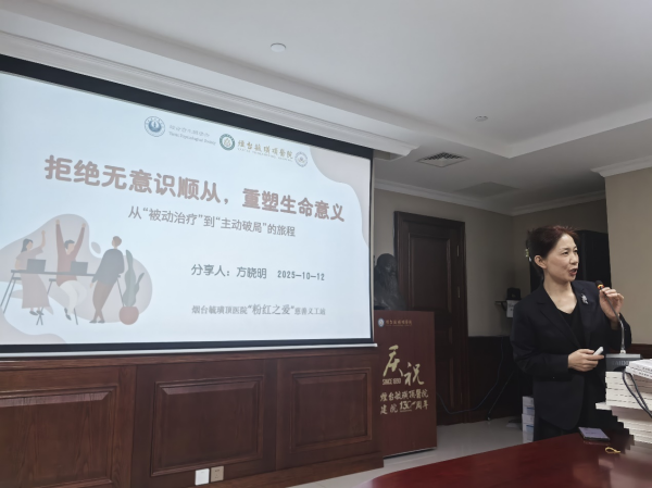 煙臺(tái)毓璜頂醫(yī)院乳腺外科護(hù)士長(zhǎng)方曉明,則結(jié)合多年護(hù)理經(jīng)驗(yàn),從“心”出發(fā),帶來(lái)“拒絕無(wú)意識(shí)順從,重塑生命意義”的動(dòng)人分享。她鼓勵(lì)患者勇敢面對(duì)疾病,把病痛轉(zhuǎn)化為重新認(rèn)識(shí)生命、熱愛(ài)生活的契機(jī)。她的話語(yǔ)如春風(fēng),溫暖了在場(chǎng)的每一顆心。